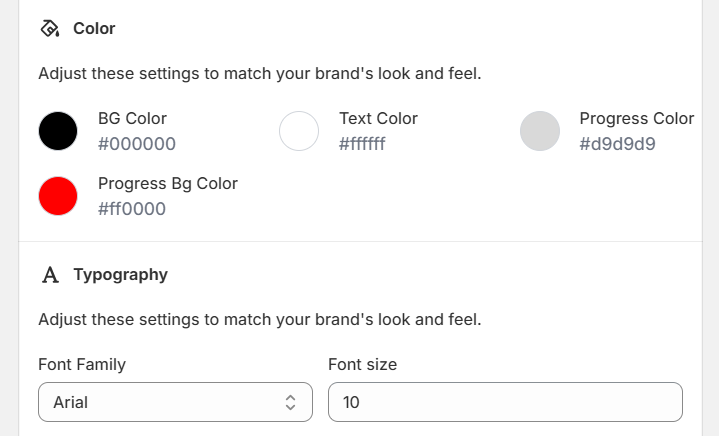 Below the Color section, you can also change the font style and size to match your store’s branding from the Typography section.