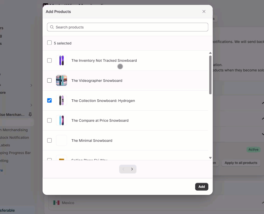 Back-in-stock notifications let customers sign up to be alerted when sold-out products are restocked. These notifications are specific to each market, so customers only receive alerts for the region they’re shopping in.