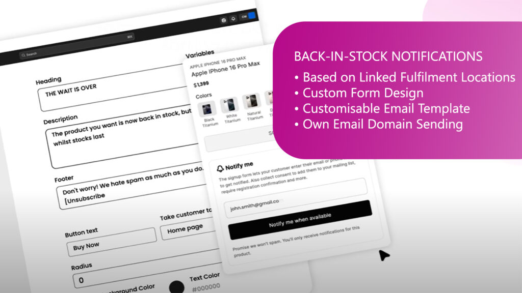 Notify customers when their favourite products are back in stock with customisable emails.